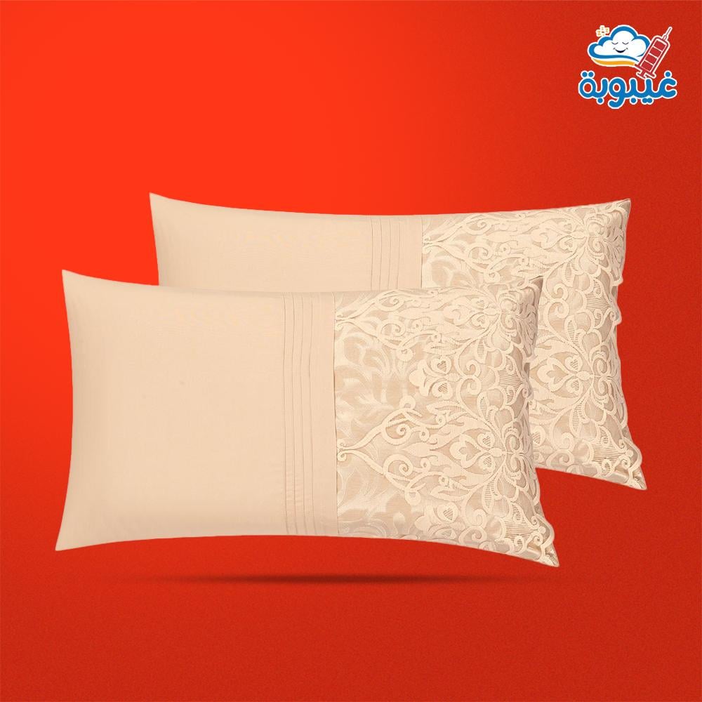 • 2 × كيس مخدة قياسي – مقاس 50×75 سم، بتصميم يناسب ديكور الغرفة ويكمل شكل المفرش.
