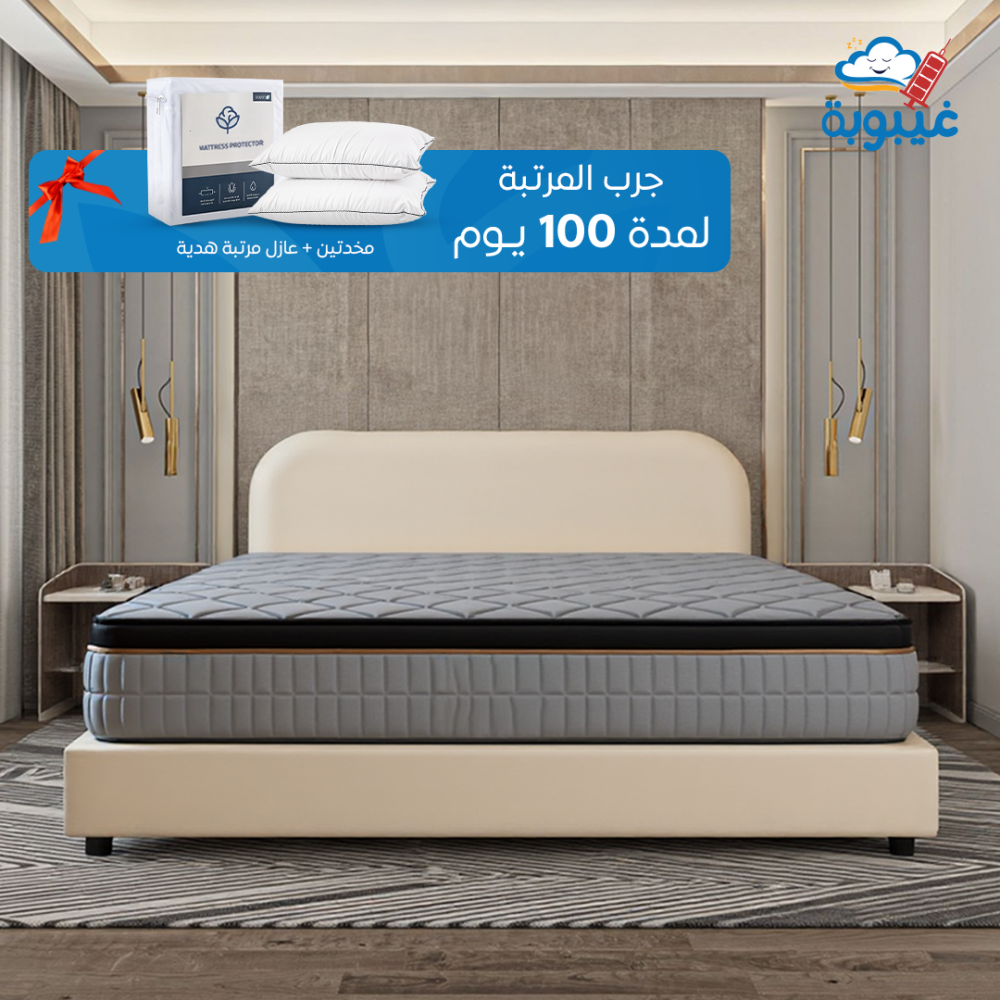 تجربة 100 يوم: نؤمن بأن اختيار المرتبة المناسبة يحتاج لتجربة فعلية. لذا نتيح لك تجربة النوم لمدة 100 يوم مع إمكانية الاسترجاع أو الاستبدال بسهولة وفق الشروط المحددة.