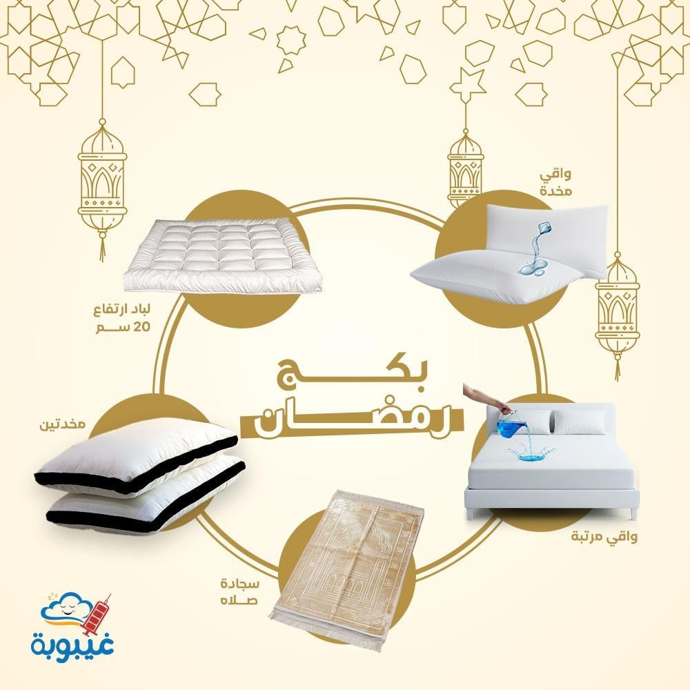 لأن رمضان شهر عبادة وجهد يومي، صمّمنا لك بكج رمضان من مفارش غيبوبة ليكون رفيق راحتك بعد تعب المطبخ وقيام الليل. بكج متكامل يوفّر لك نومًا هادئًا وراحة حقيقية تعيد لك نشاطك لتبدأ يومك التالي بكامل قوتك.